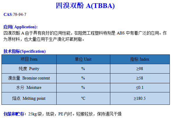 四溴雙酚A(TBBA) 2022-9-5 本文被閱讀 1961 次
