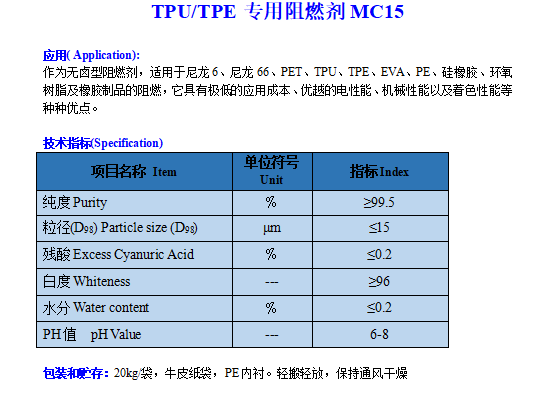 TPU/TPE專用阻燃劑MC15 2022-12-14 本文被閱讀 1323 次